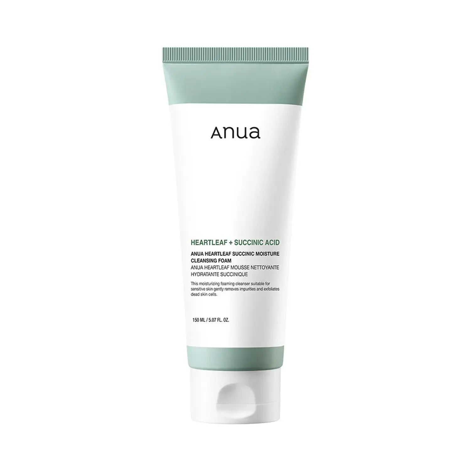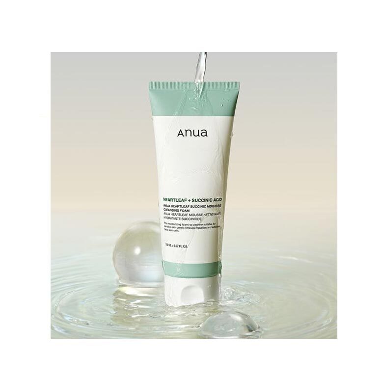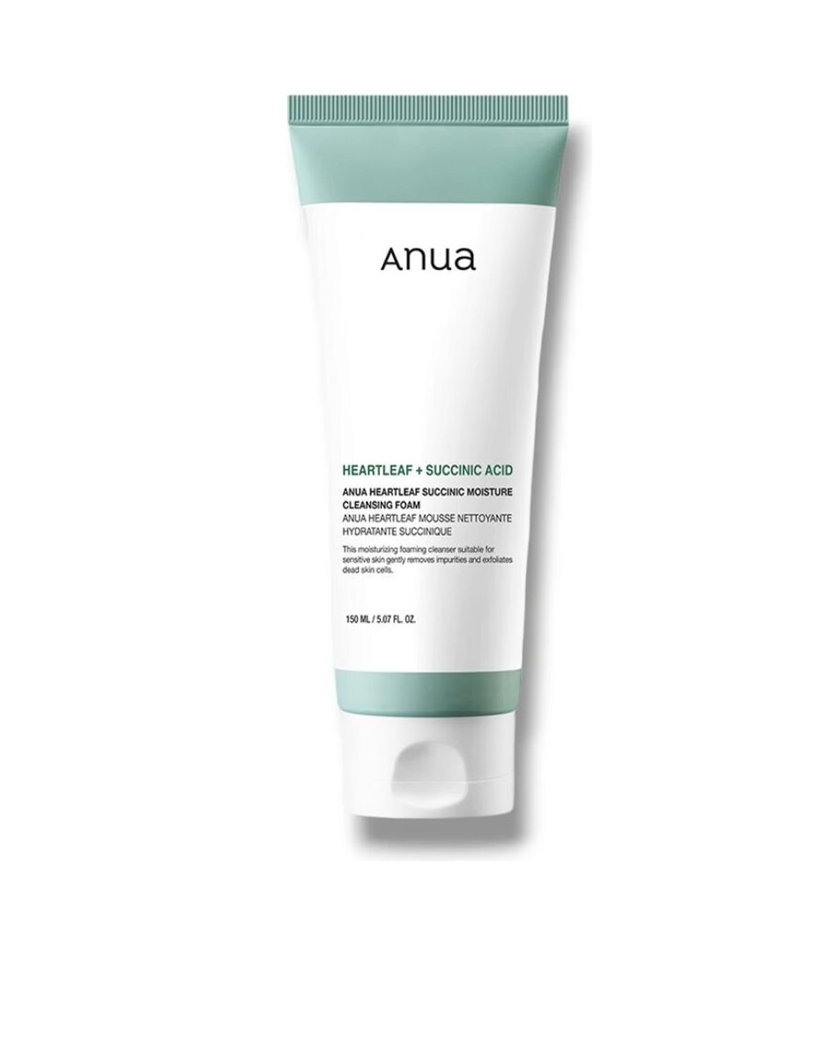 The Heartleaf Succinic Moisture Cleansing Foam effectively cleanses the skin without stripping moisture. Heartleaf extract calms irritation, while Succinic Acid gently exfoliates and refines pores, leaving the skin feeling fresh and balanced.