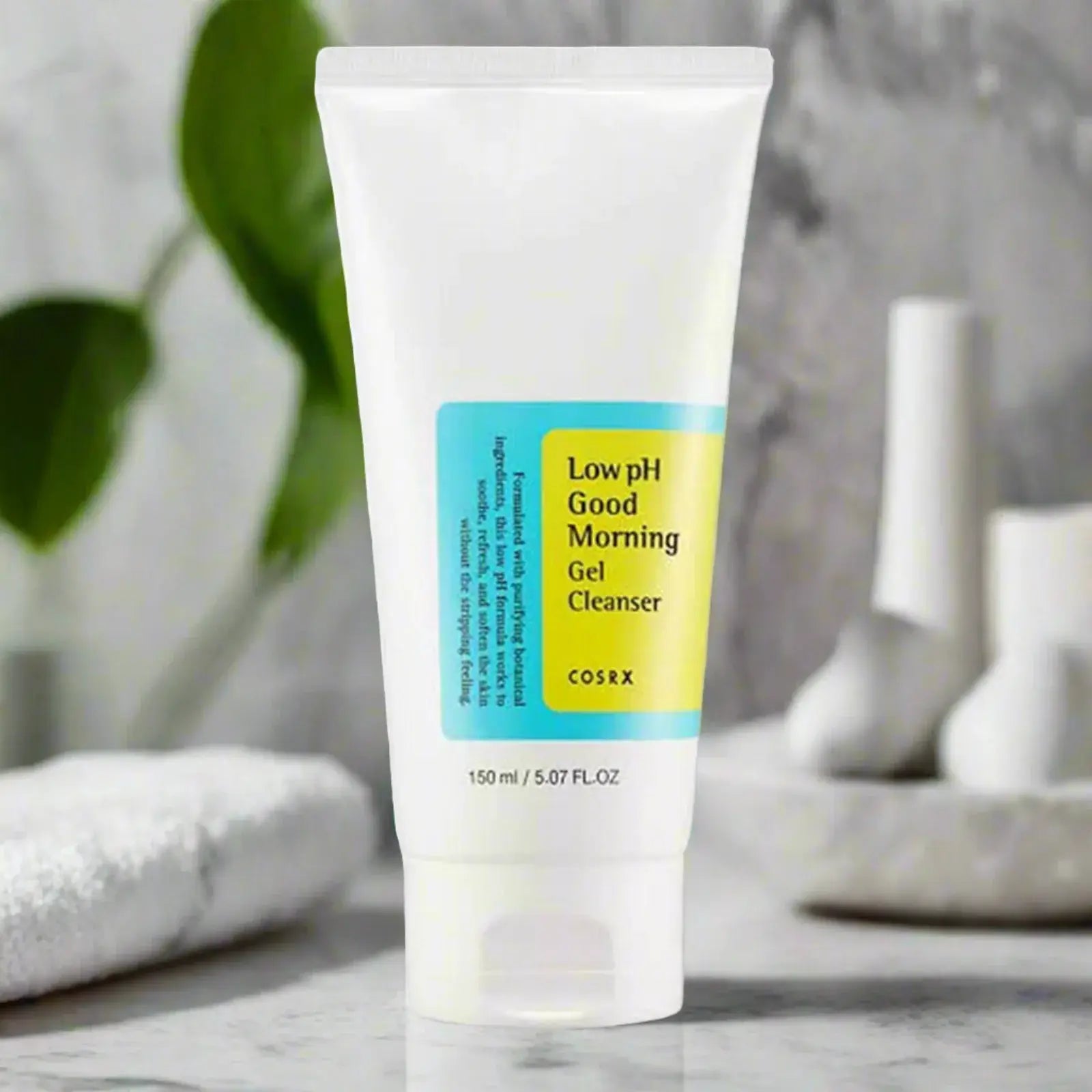 The COSRX Low pH Good Morning Gel Cleanser is a gentle yet effective facial cleanser designed to remove impurities and excess oil without disrupting the skin’s natural barrier. Formulated with Tea Tree Leaf Oil and natural BHA, it helps to control sebum, unclog pores, and mildly exfoliate the skin. Its low-pH formula ensures a soothing cleanse, making it suitable for all skin types, including sensitive skin.