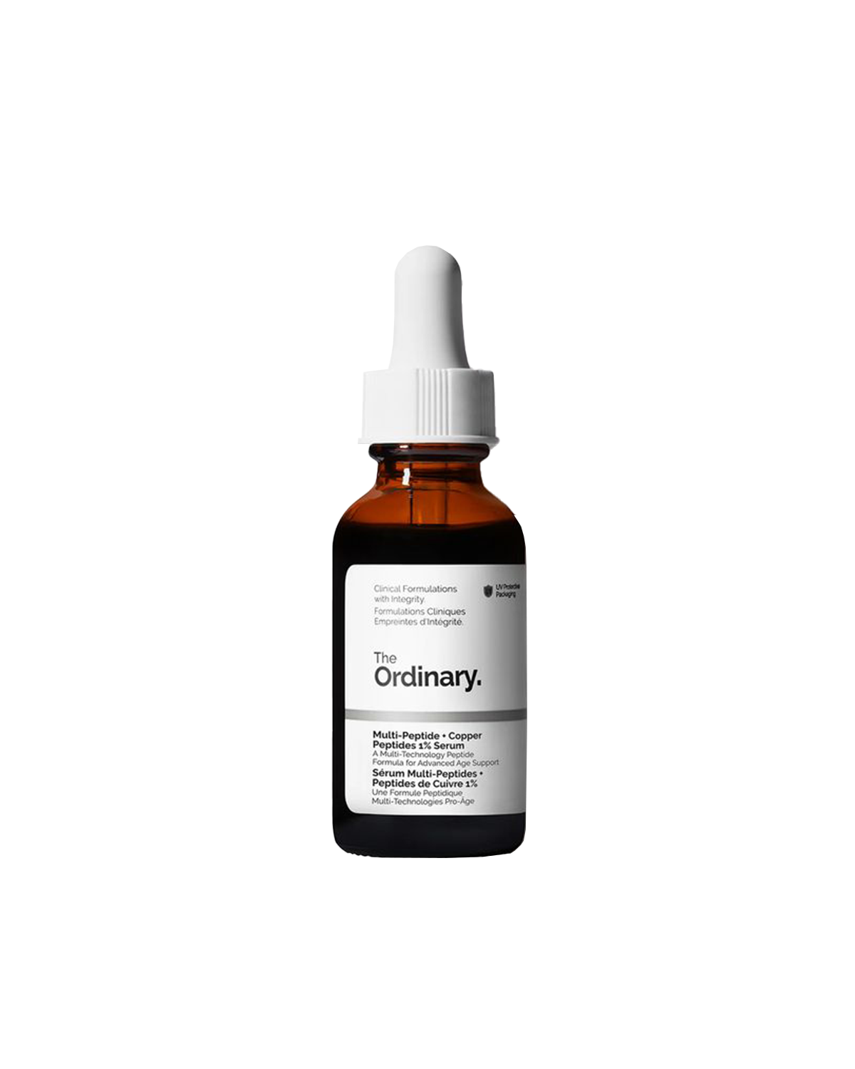 The Ordinary Multi-Peptide + Copper Peptides 1% is a powerful anti-aging serum designed to enhance skin renewal, elasticity, and firmness. Infused with a 1% concentration of Copper Peptides, it promotes collagen production and accelerates skin healing while reducing visible signs of aging. This lightweight, fast-absorbing formula also contains multiple peptides such as Matrixyl and Argireline to improve fine lines, wrinkles, and overall skin resilience. Ideal for all skin types, this serum helps achieve a more youthful, radiant complexion.