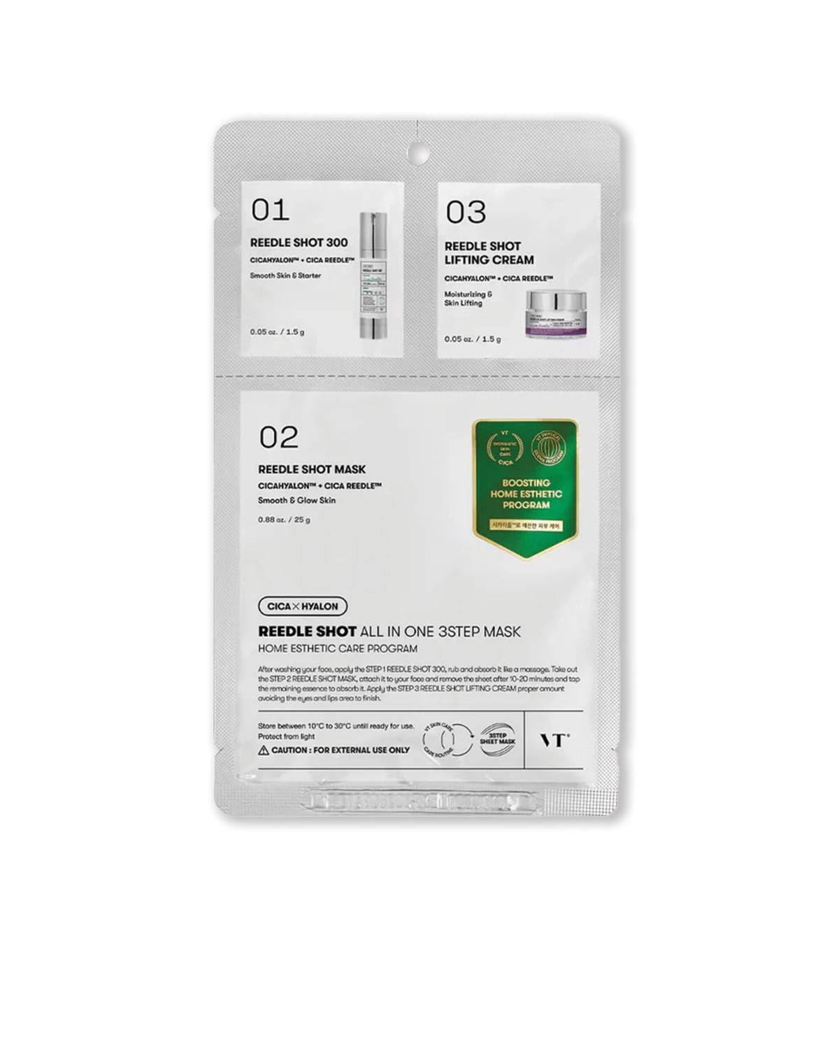 A 3-step mask set that includes a cleanser, serum, and mask infused with Reedle Shot technology to refine skin texture, boost hydration, and enhance firmness.