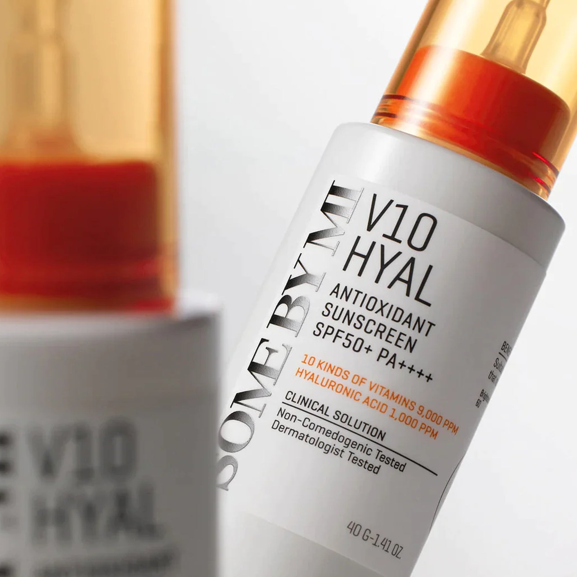 The Some By Mi V10 Hyal Antioxidant Sunscreen is a **broad-spectrum SPF 50+ PA++++ sunscreen** infused with **10 Multi-Vitamins, Hyaluronic Acid, and Vitamin C** to protect the skin from UV rays while preventing premature aging. The lightweight, non-greasy formula hydrates, brightens, and strengthens the skin barrier while offering antioxidant benefits.